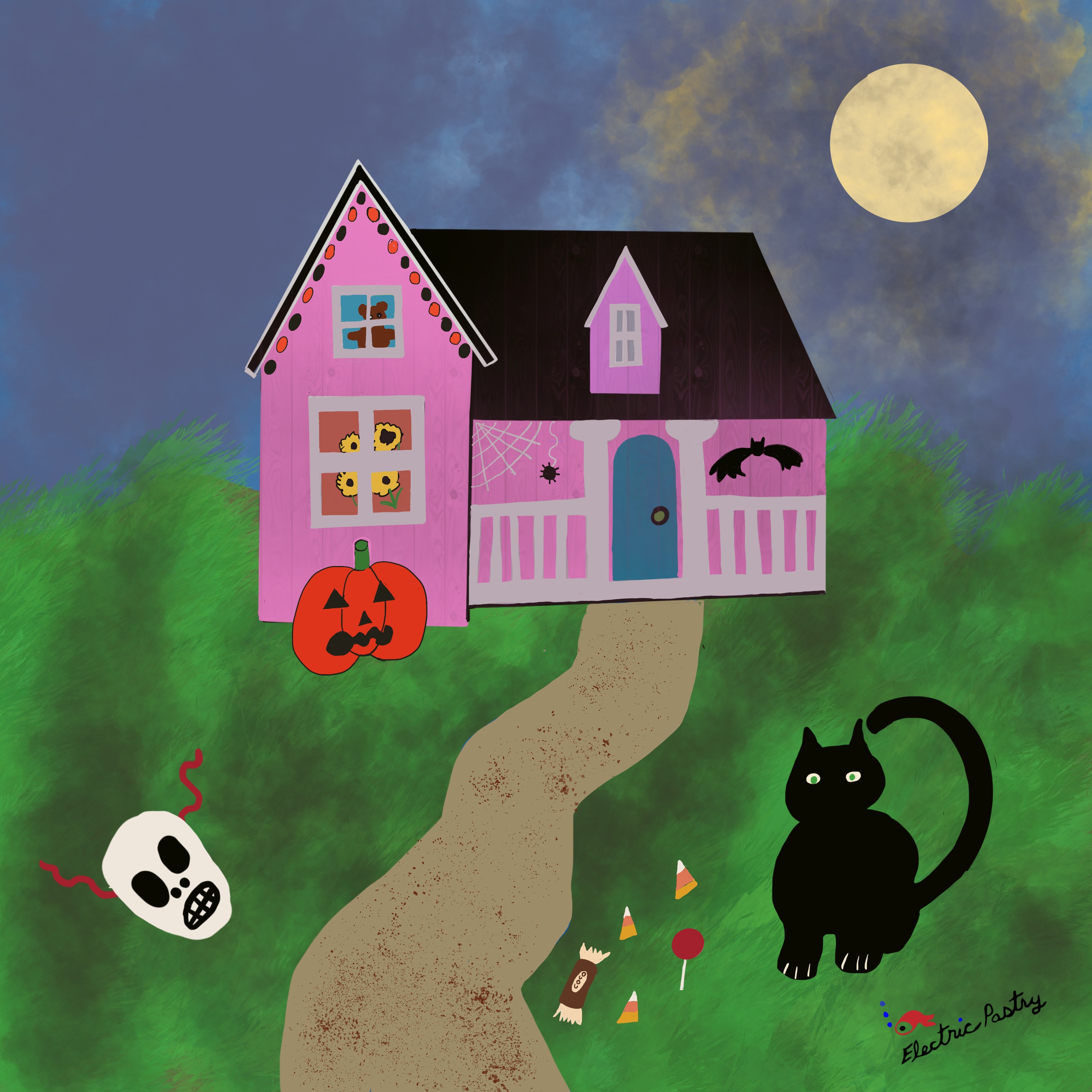 The kids charged toward doors to ring them. They stepped over elaborate displays of plastic bones and tombstones which said things like “Here Lies Izzy Dead”. Essence chuckled. She knew Halloween would pass quickly and had looked forward to all the fun. When she stepped on the sidewalk, her feet felt light and airy. She knew she needed to step harder, to ground herself, so she would not float away.